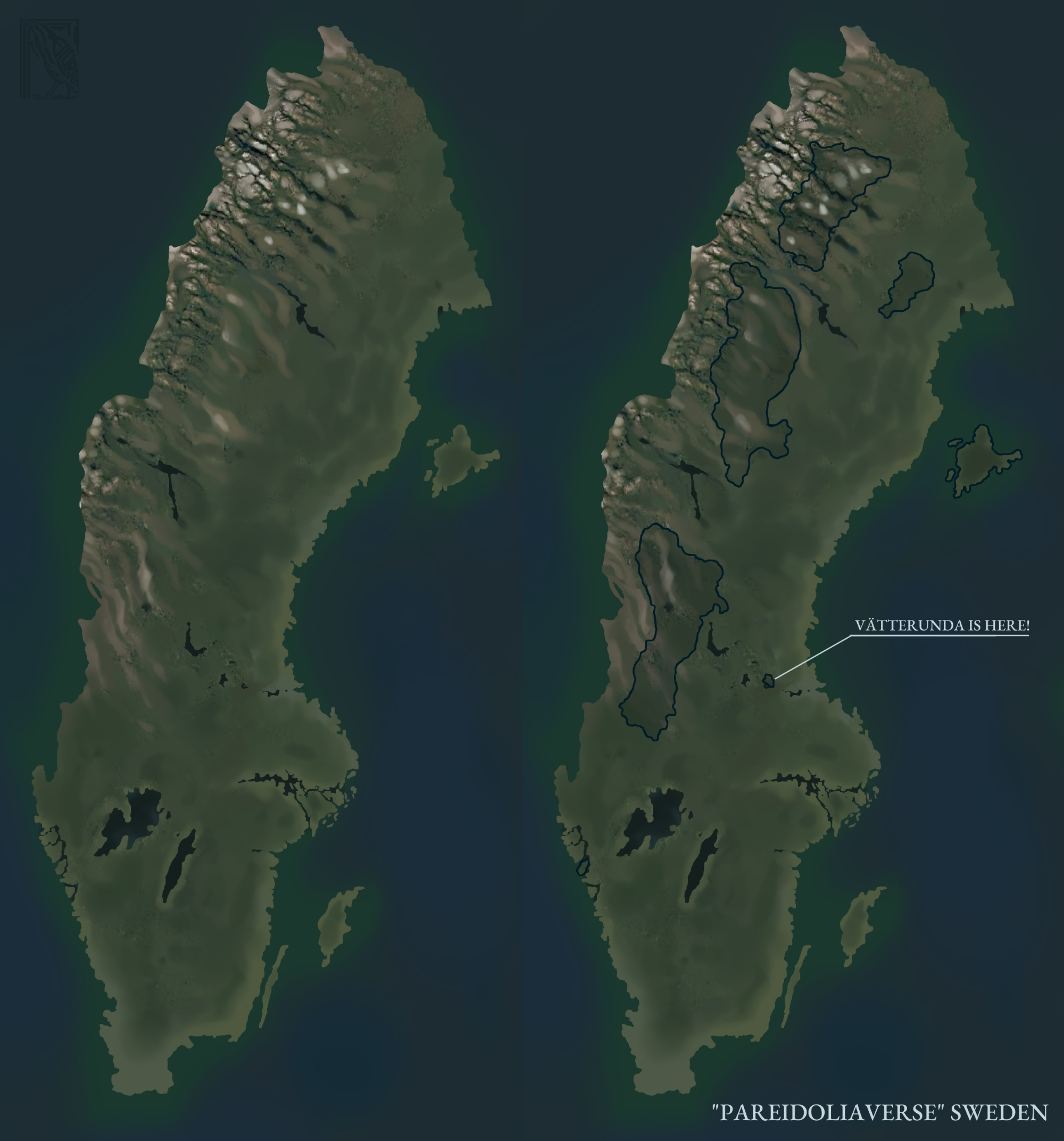so yes, this means that our familiar landmasses in pareidolia look slightly different and are often a bit bigger than in the real world (see below). at the point of the story, this is not really widely known about in human society, but there are probably a bunch of scientists/geographers who have noticed inconsistancies/problems when trying to map the world etc...
